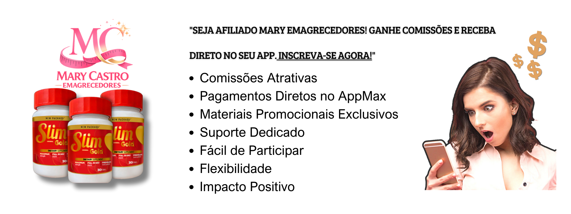 Você, que já conhece e confia nos produtos da Mary Emagrecedores, agora pode transformar essa confiança em uma oportunidade de renda extra! Ao se tornar nosso afiliado, você ganhará comissões por cada venda realizada através do seu link personalizado, recebendo os pagamentos diretamente no seu AppMax.